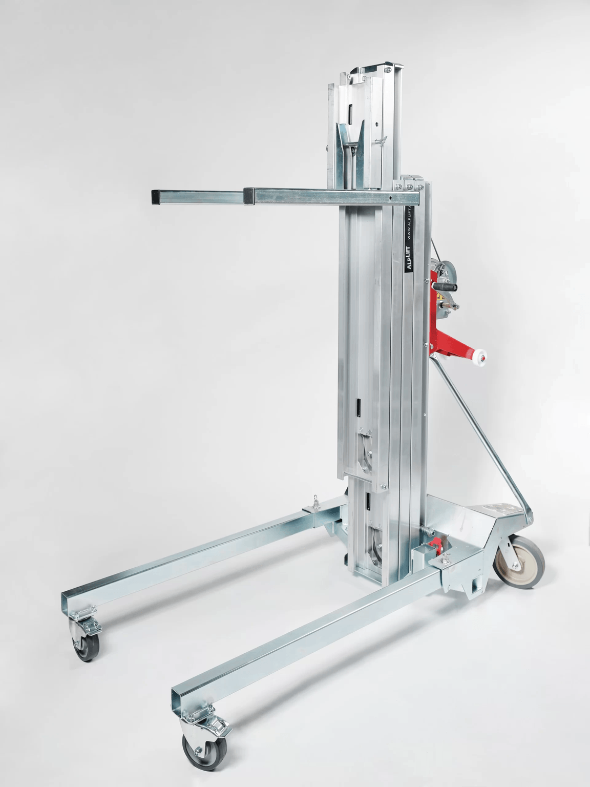 L'élévateur de charge M-476 est compact et facile à transporter, idéal pour une utilisation en intérieur et extérieur, et fonctionne avec un entraînement manuel, sans besoin d’alimentation électrique.