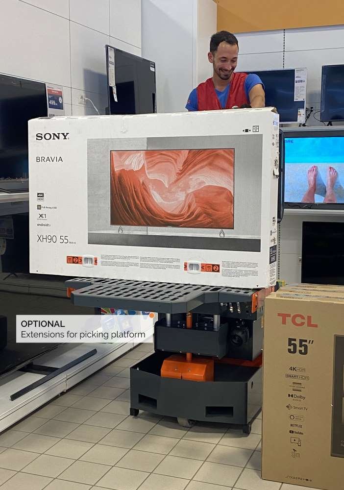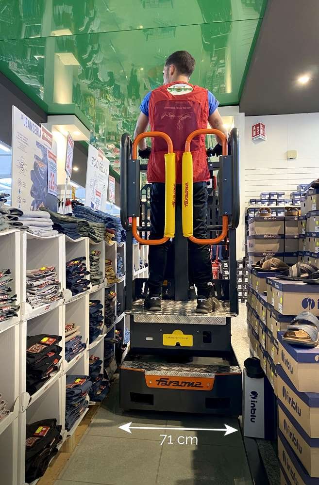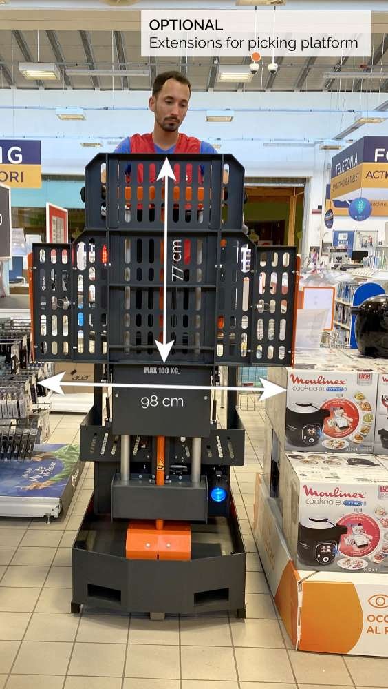 L'Elevah 40 Move Picking est une nacelle automotrice verticale e est conçu pour vous accompagner dans vos activités de prélèvement en toute sécurité jusqu'à une hauteur de 4 mètres. Sa récente version en aluminium la rend plus grande, ergonomique et facile à manœuvrer. Le plateau picking est spacieux, avec une extension de 66 x 92 cm, et peut supporter des charges allant jusqu’à 100 kg.
