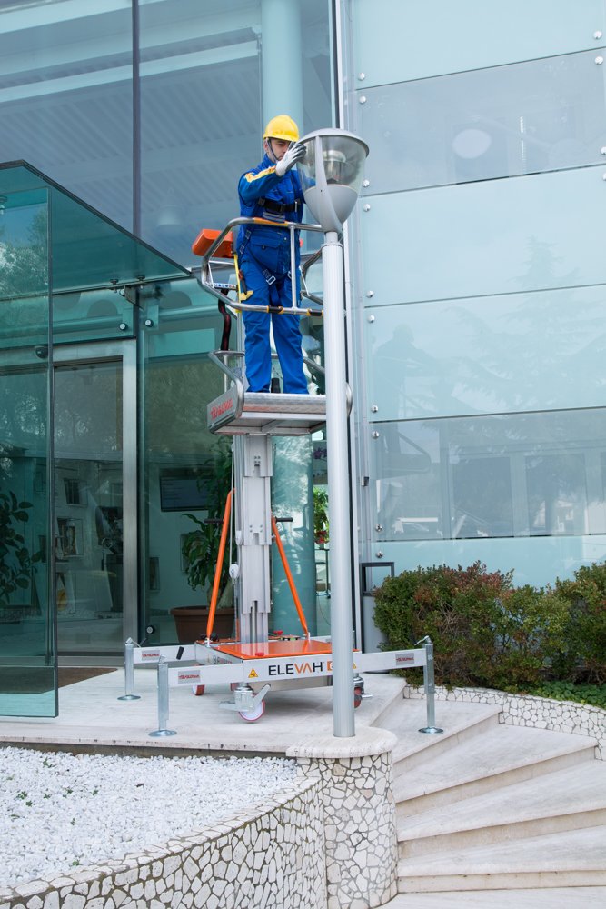 Si vous cherchez une solution idéale pour optimiser le travail et les temps, la nacelle Elevah E61 à traction manuelle et levée électrique, fabriquée entièrement en aluminium, est la solution parfaite. Facile à utiliser, il suffit de la placer, de freiner les roues et d’actionner le bouton pour atteindre la hauteur souhaitée. Elle permet de lever un opérateur et d’effectuer des opérations d’entretien jusqu’à 6,1 m (avec stabilisateurs ; 3,9 m sans stabilisateurs).